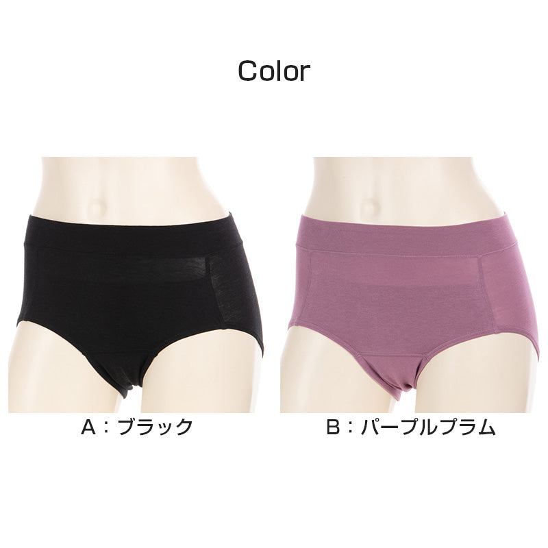 なめらかな肌触りが心地いいレーヨン+綿混素材の生理用ショーツです。