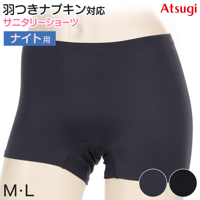 サニタリーショーツ 生理用ショーツ ナイト用 夜用 ショーツ レディース 羽根つき M・L (生理用 防水 アツギ サニタリー 羽つき ウイング 下着 インナー)