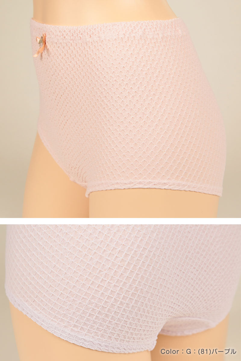 コチラのショーツは、オリジナルの鹿の子編み生地を使用。