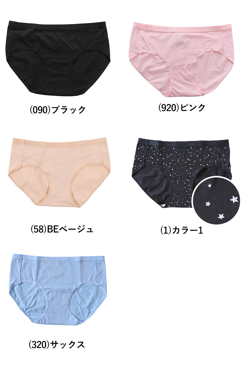 【レディース】/【ショーツ】/【はきこみ普通】/【M】/【L】/【Hanes[ヘインズ]】/【ブラック系】/【ベージュ系】/【ピンク系】/【ブルー系】/【柄】/【通年】