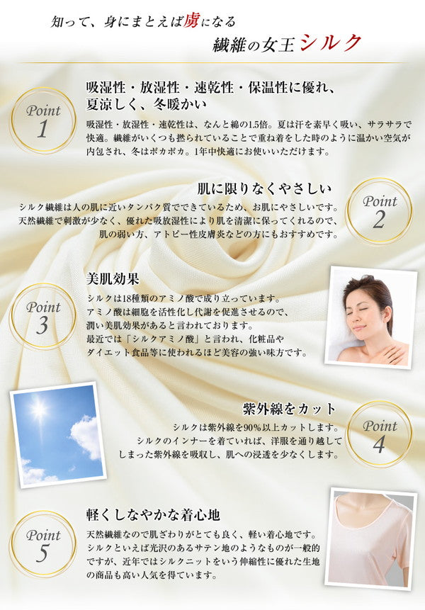 シルクインナーなら、絹の持つ保湿効果でお肌にうるおいを与えてくれます。