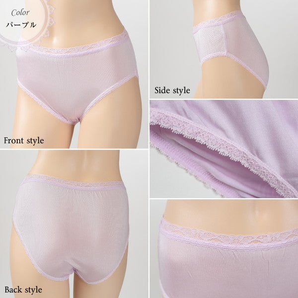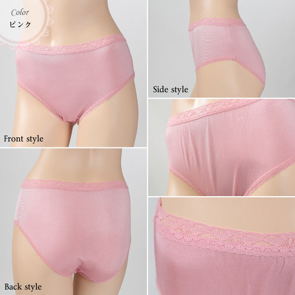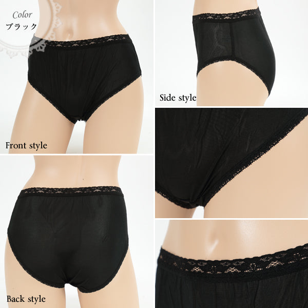 ふちのレースがおしゃれな純シルク100%のレースショーツです。