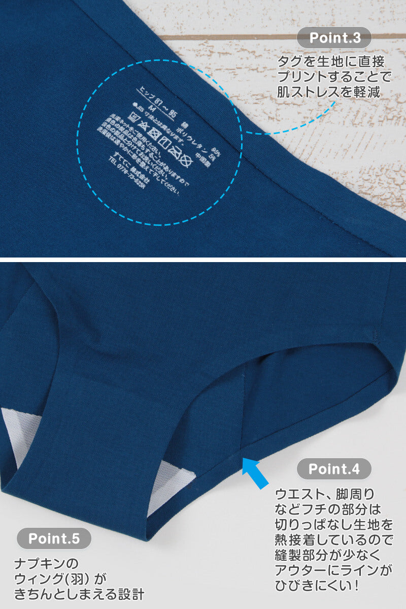 ナプキンのウィング(羽)がきちんとしまえる設計で、ズレを防止します。