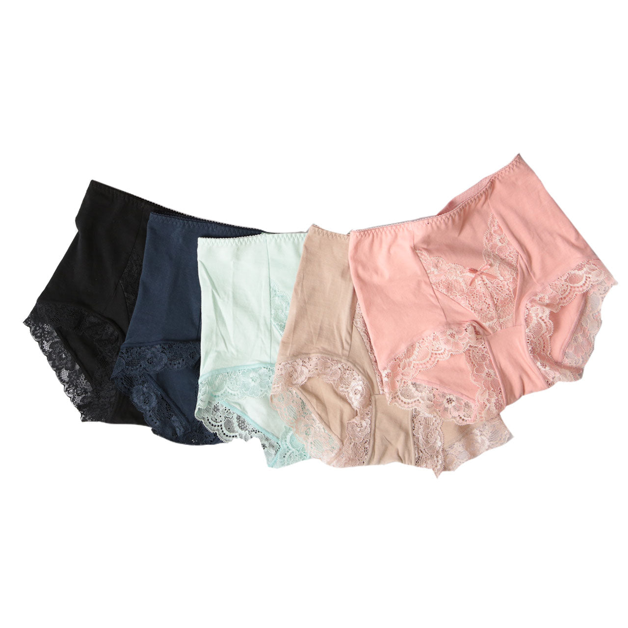 鮮やかなレースの綿混ガードルショーツ6枚セットです。