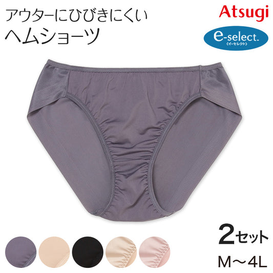 【2枚セット】ショーツ ヘム アウターに響かない 婦人 アツギ e-select ペアショーツ M~4L (イーセレクト 3l 4l atsugi ベージュ 黒 パンティ 肌着 婦人下着 インナー シームレス まとめ買い 大きいサイズ セット シンプル)