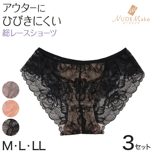 【3枚セット】 ショーツ レディース レースショーツ アツギ ひびかない 透け感 総レース M~LL NUDEMake ヌードメイク 下着 女性 レディースインナー 大きいサイズ インナー 肌着 パンツ コーディネートショーツ カラー (在庫限り)