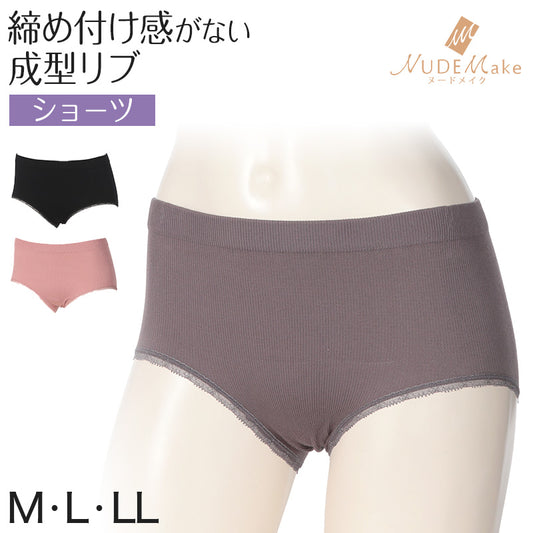 ショーツ アツギ レディース 成型リブ リブショーツ 締め付けない リラックス M~LL インナー 女性 下着 パンツ リブ レース 無地 伸縮性 ヌードメイク ATSUGI