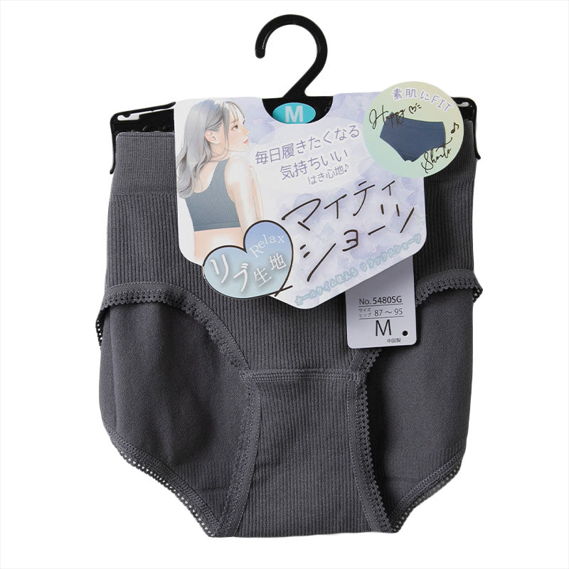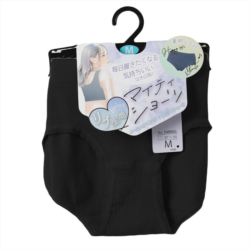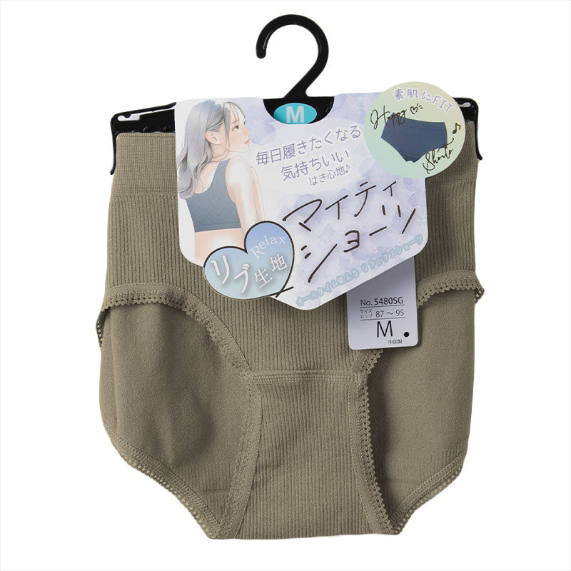 ショーツ リブ生地 やわらか 優しいフィット感 無地 シンプル リラックス ストレッチ 伸縮性 伸びる ヨガ おうち 自宅 ゆったり らくらく 黒 グレー 茶 青 緑 M L LL
