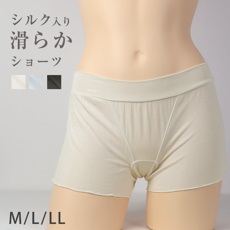 ショーツ 一分丈 シルク混 レディース ゆったり 寝るとき ボクサー パンツ M L LL 女性 下着 おうち時間 リラックス ショーツ単品 そけい部締め付けない なめらか ストレスフリー 快適 痛くない