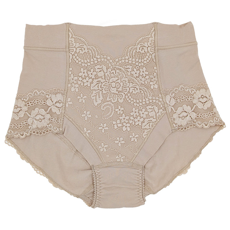 お腹部分の身生地と身生地のあいだにパワーネットを内蔵し、しっかりとお腹をおさえる機能をもったうれしいショーツです。