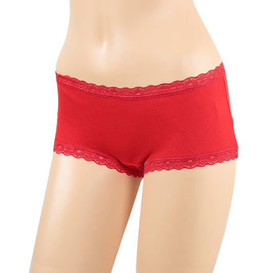 赤下着 レディース レース付き ボックスショーツ M L LL 1分丈 肌着 インナー ボトムス パンツ 風水 運 レッド 女性 婦人 綿100% コットン 贈り物 プレゼントにぴったり 保温 お祝い 還暦 還暦祝い 健康祈願 幸運 開運 赤い下着 家内安全 商売繁盛 厄除け 招福