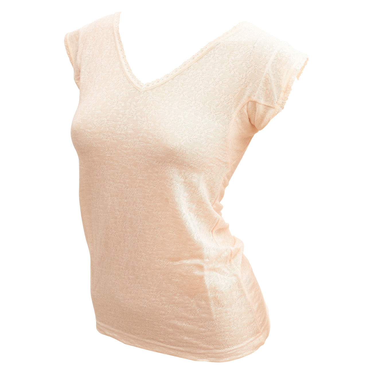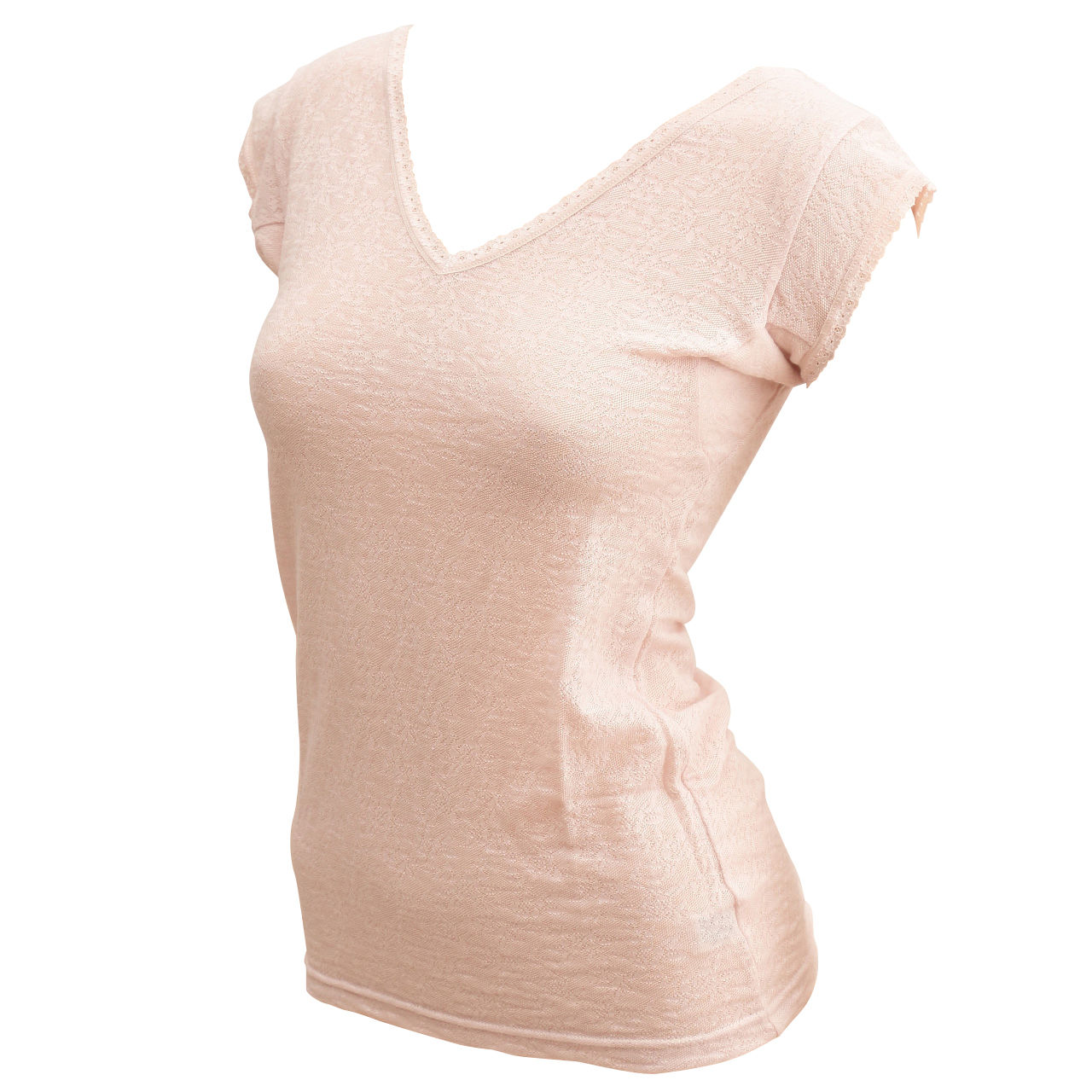 フレンチ袖 インナー 汗取り ジャガード織 M・L (汗じみ 脇汗 綿 下着 半袖 レディース シャツ 2分袖 女性 肌着 薄手) (在庫限り)