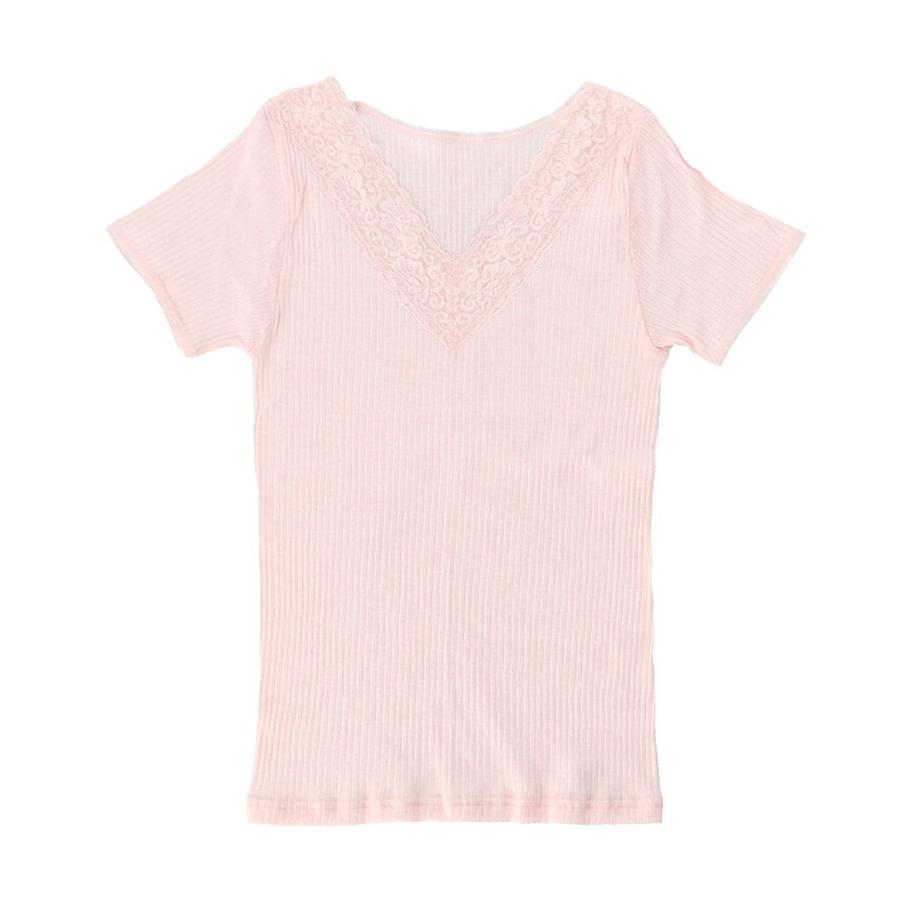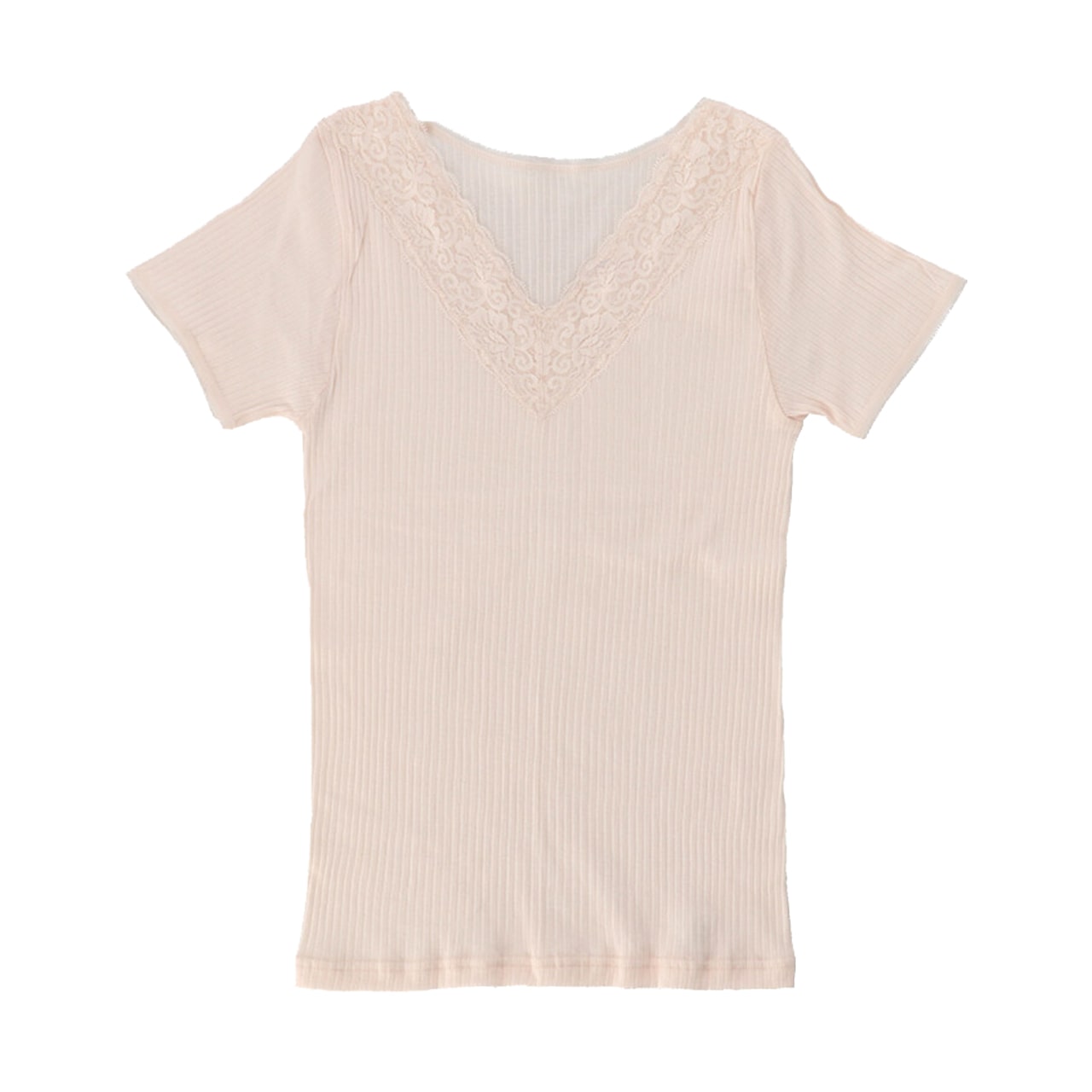 婦人 綿100% Vネックレース 3分袖インナー M~3L