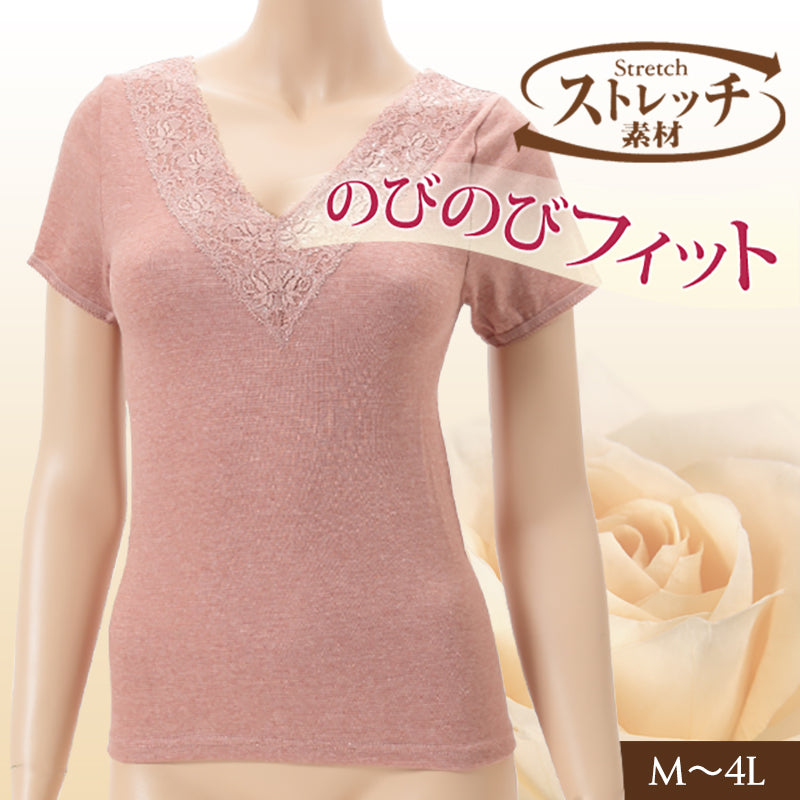 レディース 3分袖インナー のびる ストレッチ 半袖 伸縮性 フィット感 快適 やさしい 肌触り 心地いい M~4L