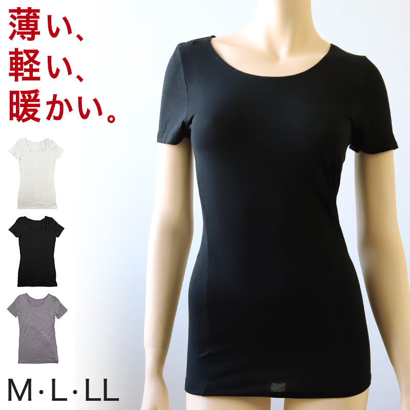 【レディース】/【肌着・ニットインナー】/【半袖】/【M】/【L】/【LL】/【ホワイト系】/【グレー系】/【ブラック系】/【冬物】/【うるおい効果】/【あったかい】