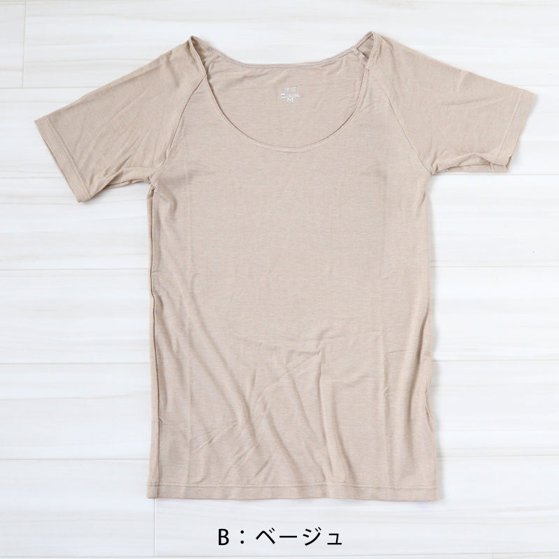 福助 インナー 半袖 レディース 3分袖 シャツ M~LL 下着 薄手 暖かい あったか 秋 冬 ストレッチ 保湿 無地 インナーシャツ 肌着 女性 婦人 (在庫限り)