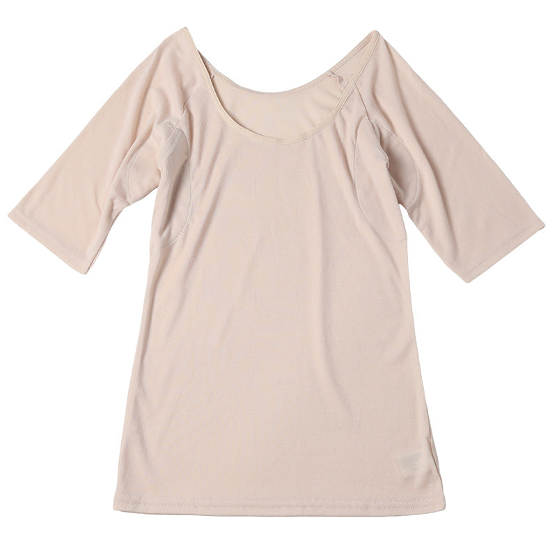 レディース 5分袖 シャツ 汗取り 脇汗パット インナー 肌着 M L LL 下着 女性 婦人 インナーシャツ スリーマ 夏 汗対策 (在庫限り)
