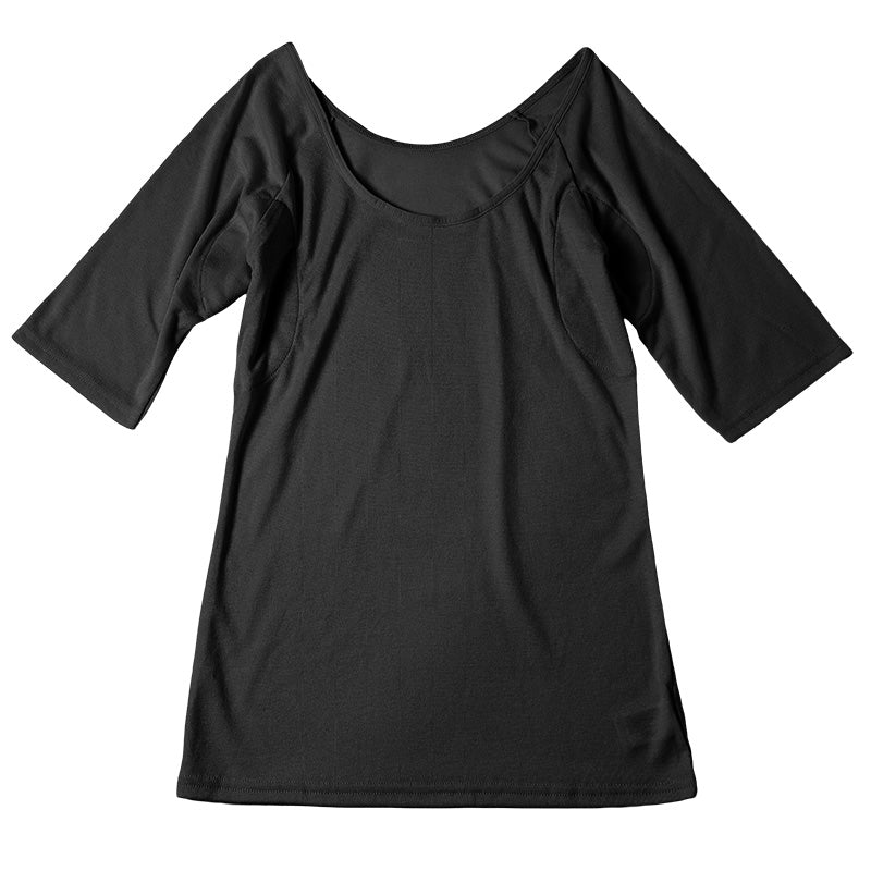 大きな汗取りパット付き、レディース 5分袖Tシャツです。