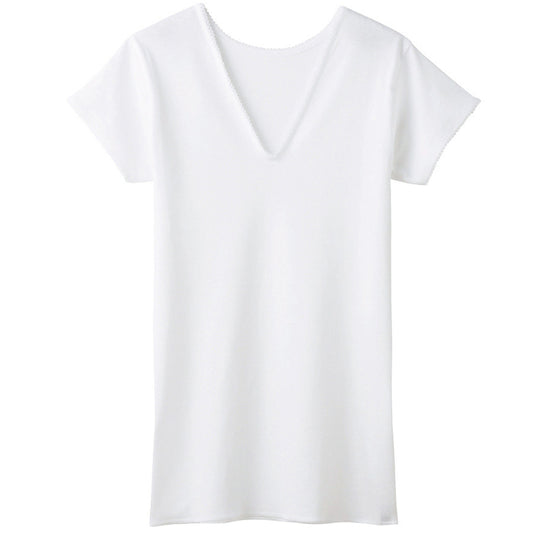 レディース シルク コットン 半袖シャツ M~LL 下着 綿100% 絹 シルク100% コットン100% 冷えとり 肌着 襟ぐり 広 深あき シャツ tシャツ (送料無料)