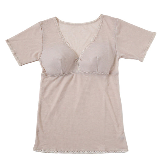 カップ付きインナー 綿100% 半袖 レディース M~LL (カップ付き インナー 下着 レース 3分袖インナー) (婦人肌着) (取寄せ)