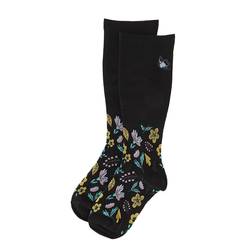 着圧ソックス レディース 大きいサイズ ハイソックス 靴下 綿混 柄 日本製 3L-4L・5L-6L 着圧ハイソックス むくみ おしゃれ かわいい 引き締め 柄物 水玉 ボーダー ライン 花