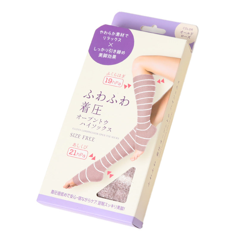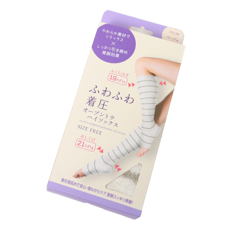 オープントウ ハイソックス 着圧ソックス 靴下 着圧 トゥレス 引き締め ケア フリーサイズ オープントゥ やわらかい 足 むくみ 美脚 ふわふわ 気持ちいい レッグウェア