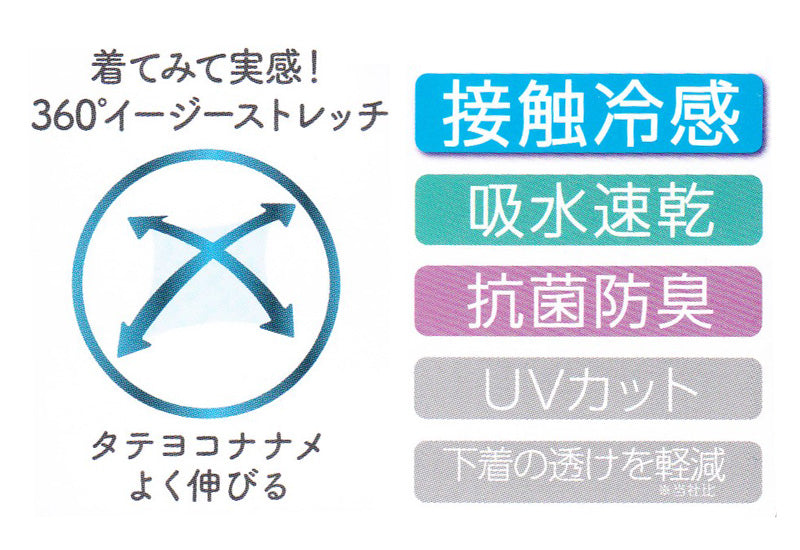 接触冷感 吸汗速乾 抗菌防臭 UVカット 360°ストレッチ