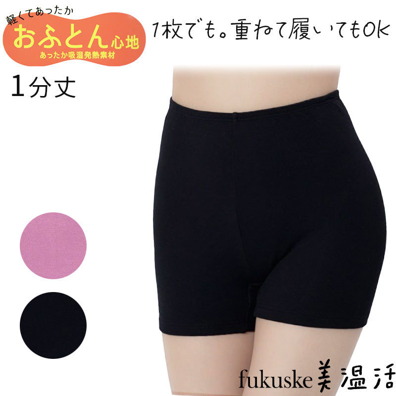 福助 あったか オーバーパンツ ショーツ 1分丈 レディース 秋冬 M~LL 下着 暖かい スパッツ ストレッチ 伸びる 防寒 冷え対策 インナー 重ね履き 1枚履き可能 (在庫限り)