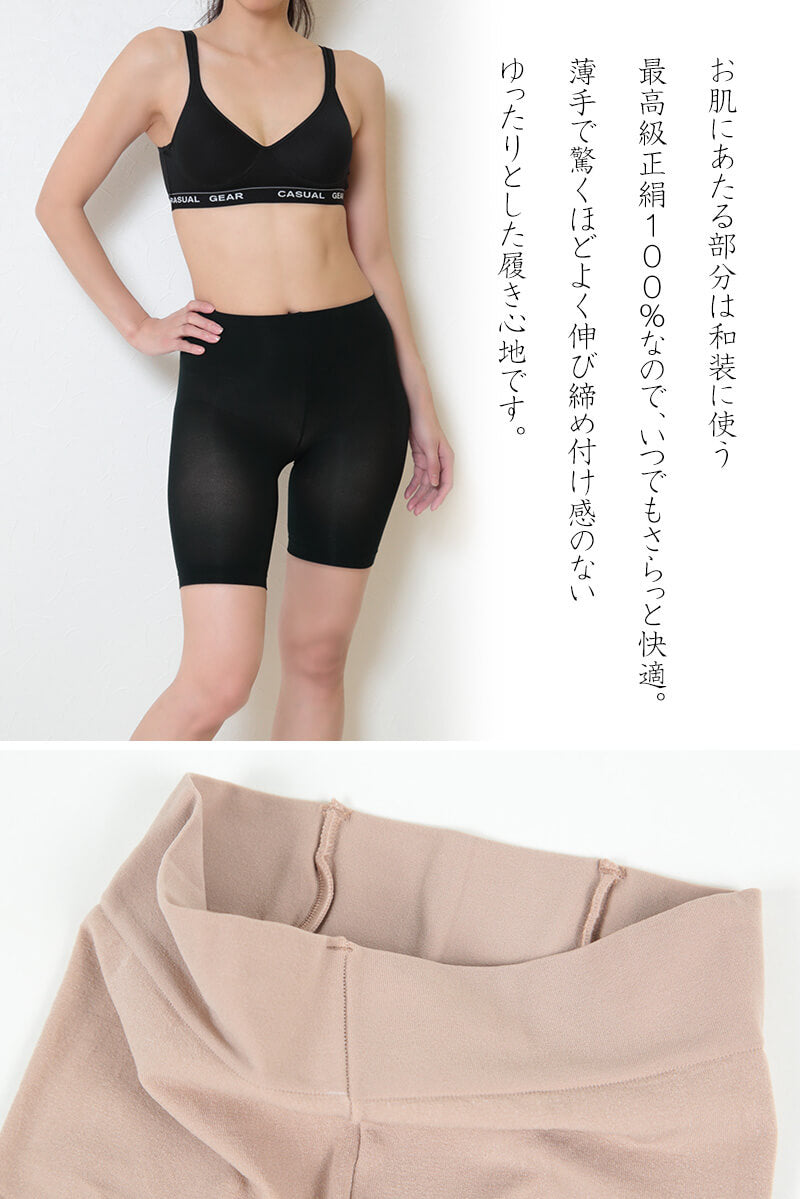 【レディース】/【レギンス・スパッツ】/【5分丈】/【JM-L】/【繭衣】/【ブラック系】/【ベージュ系】/【絹】/【通年】/【日本製】