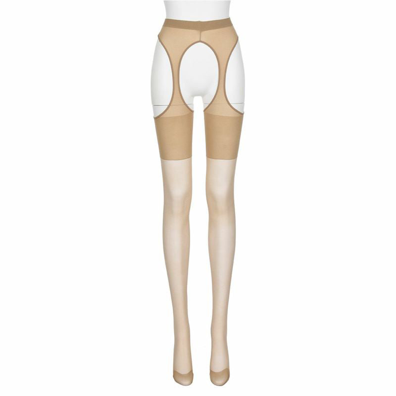 福助 サスペンダーストッキング 大きいサイズ パンティ部レス ストッキング 3L-4L 5L-6L レディース 穴あき パンスト ゆったり 伝線 穴あきストッキング オープン ムレない