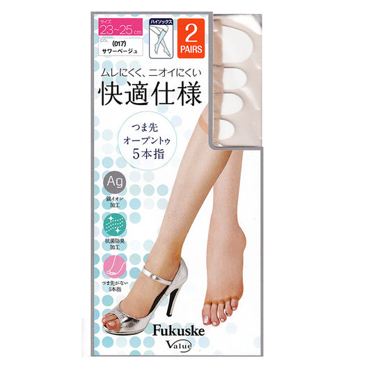 福助 5本指ストッキング ひざ下 つま先なし 指なし オープントゥ 2足組 23~25cm 膝下 5本指 五本指 ショートストッキング ストッキング 夏 レディース ベージュ