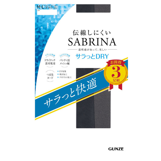 グンゼ SABRINA 伝線しにくい サラッとドライ ストッキング 3足組 M-L・L-LL レディース パンスト パンティストッキング ベージュ 黒 夏
