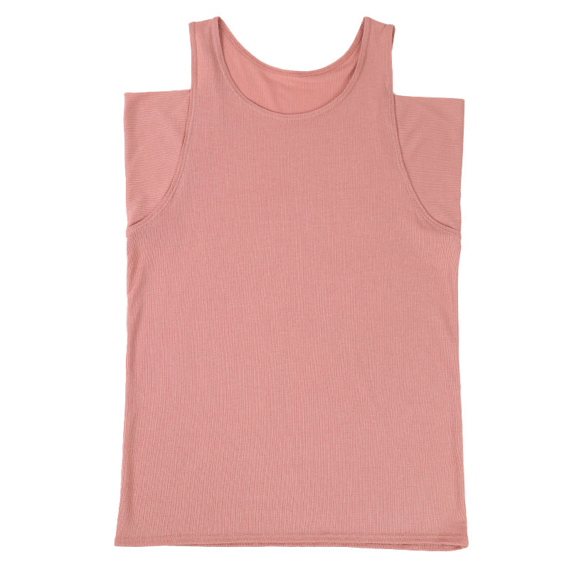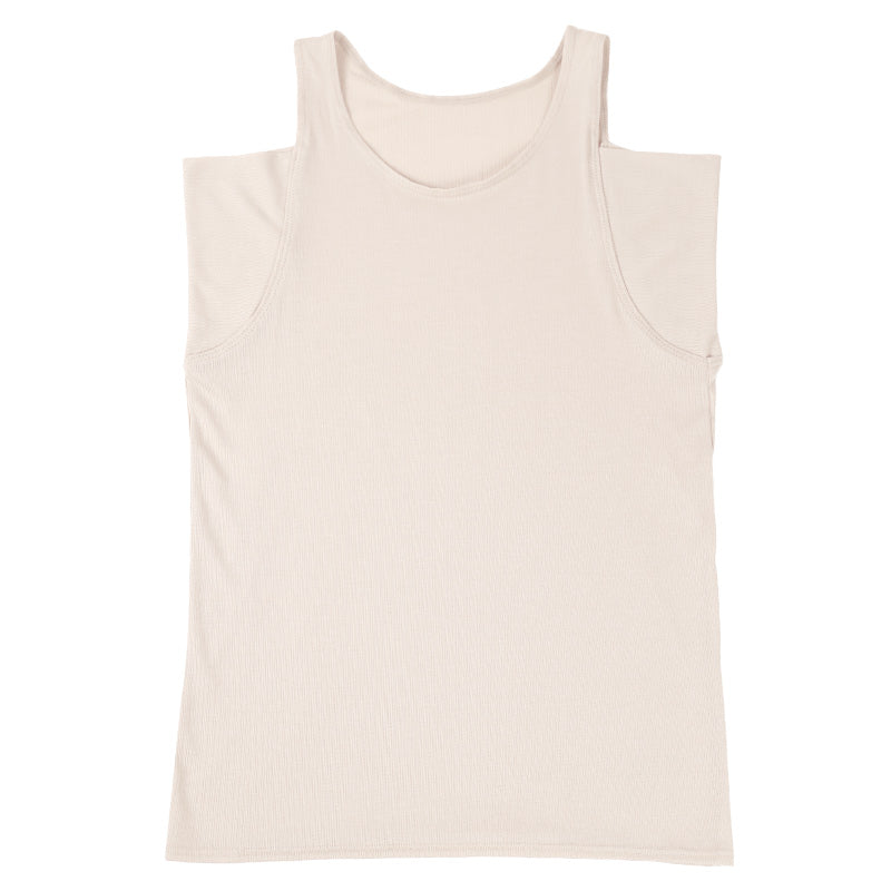 カップなし リブ素材 脇汗取り付き 通気性 伸縮性 汗染み対策 タグレス