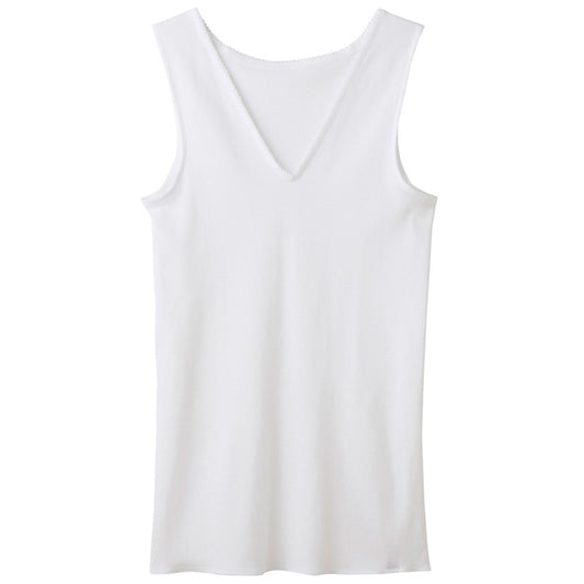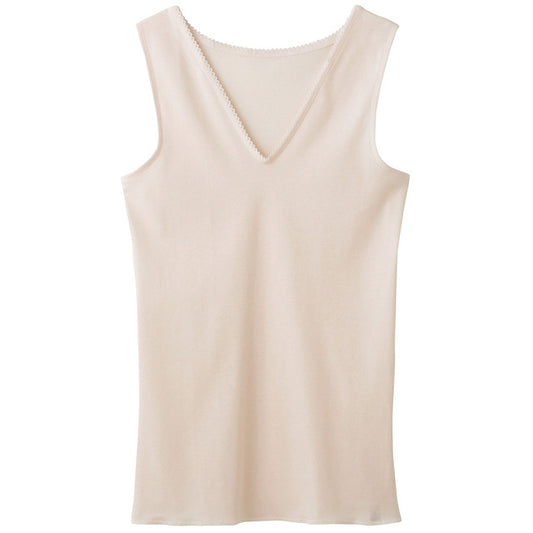 タンクトップ レディース カップ付き 綿100% 婦人 M~LL (インナー 肌着 下着 レース V首 Vネック) (婦人肌着) (在庫限り)