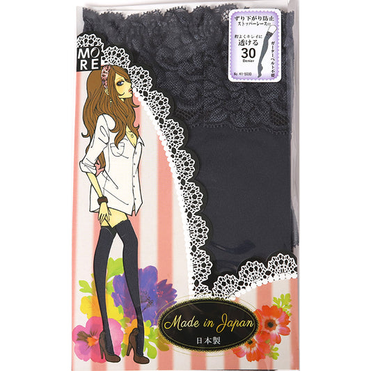 ガータータイツ ズレにくい ベルト不要 滑り止めつき 30デニール 22-25cm ガーター ガーターストッキング タイツ 太もも丈 日本製