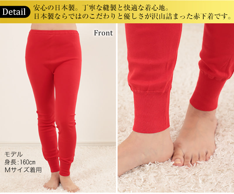 赤下着 レディース スラックス下 M L LL 肌着 タイツ ボトムス 10分丈 ロングパンツ 風水 運 レッド 女性 婦人 綿100% コットン お腹すっぽり あったかい 保温 お祝い 還暦 還暦祝い 健康祈願 幸運 開運 赤い下着 家内安全 商売繁盛 厄除け 招福