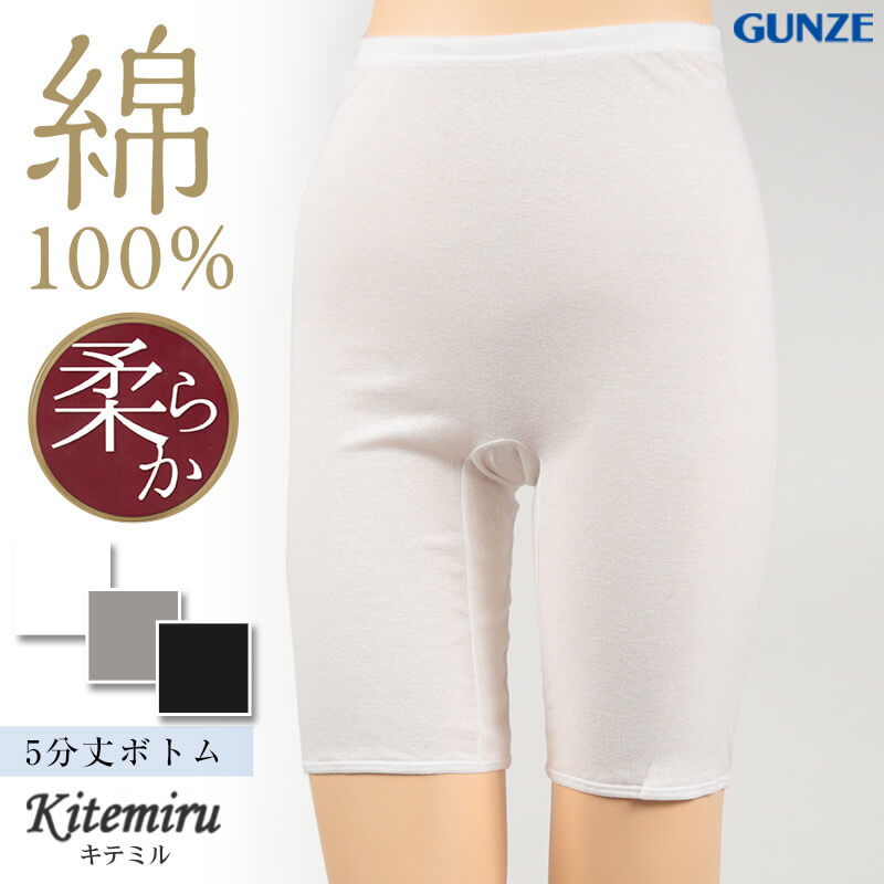 グンゼ 綿100% 5分丈ボトム Kitemiru M~LL (レディース ズボン下 インナー 下着 コットン シンプル 白 黒 グレー) (在庫限り)