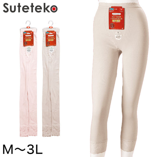 レディース 部分保温肌着 毛混袋編み7分長パンティ M~3L (7分丈 ひざ下丈 ズボン下 冷え防止 防寒) (婦人肌着)