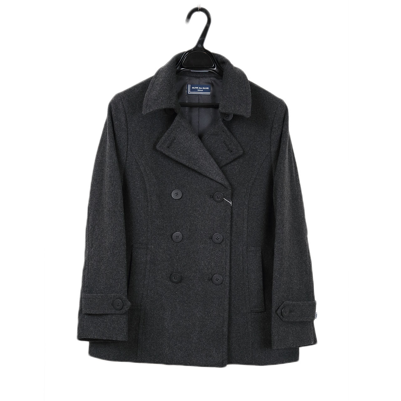スクールコート 女子 高校生 中学生 ピーコート Pコート ショート丈 S~LL OLIVE des OLIVE 紺 グレー 女の子 学生 レディース 冬 防寒 通学 フードなし (送料無料) (在庫限り)