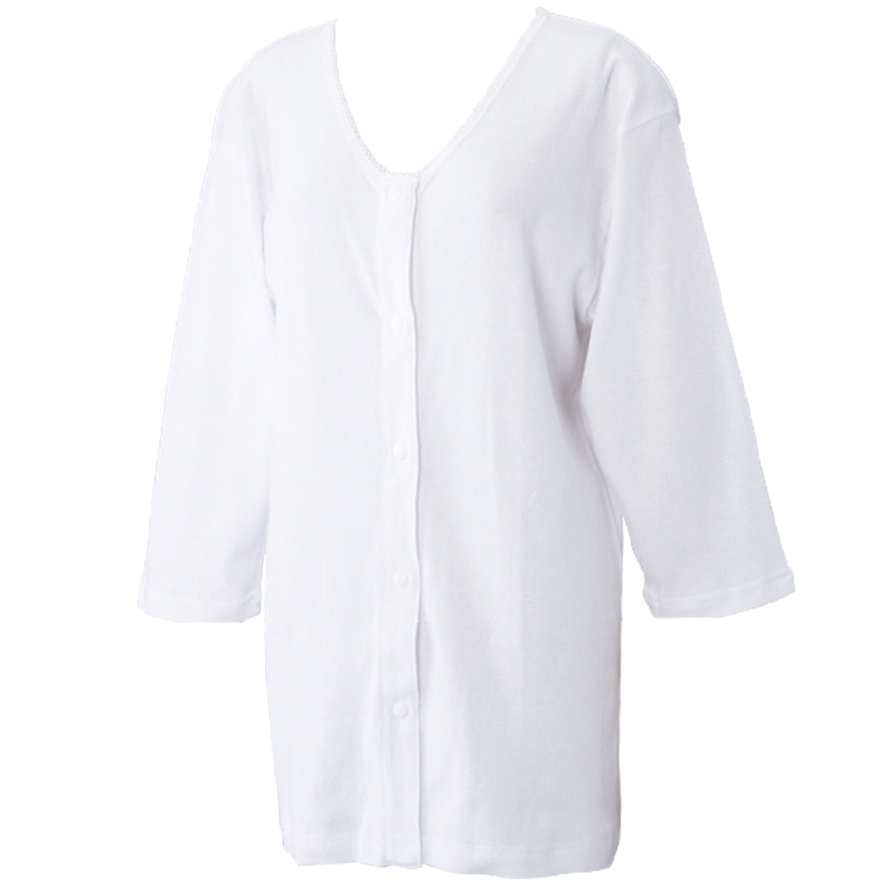 前開きシャツ 婦人 介護 7分袖 下着 インナー 5L (綿100% プラスチックホック式 ワンタッチ肌着 シャツ レディース 女性 大きいサイズ) (在庫限り)