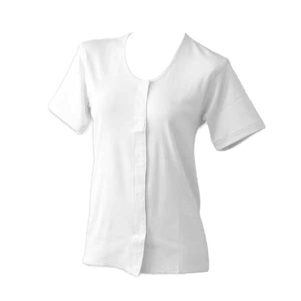 マジックテープ式で半袖前開きになるレディース(婦人・女性)用ワンタッチ肌着です。
