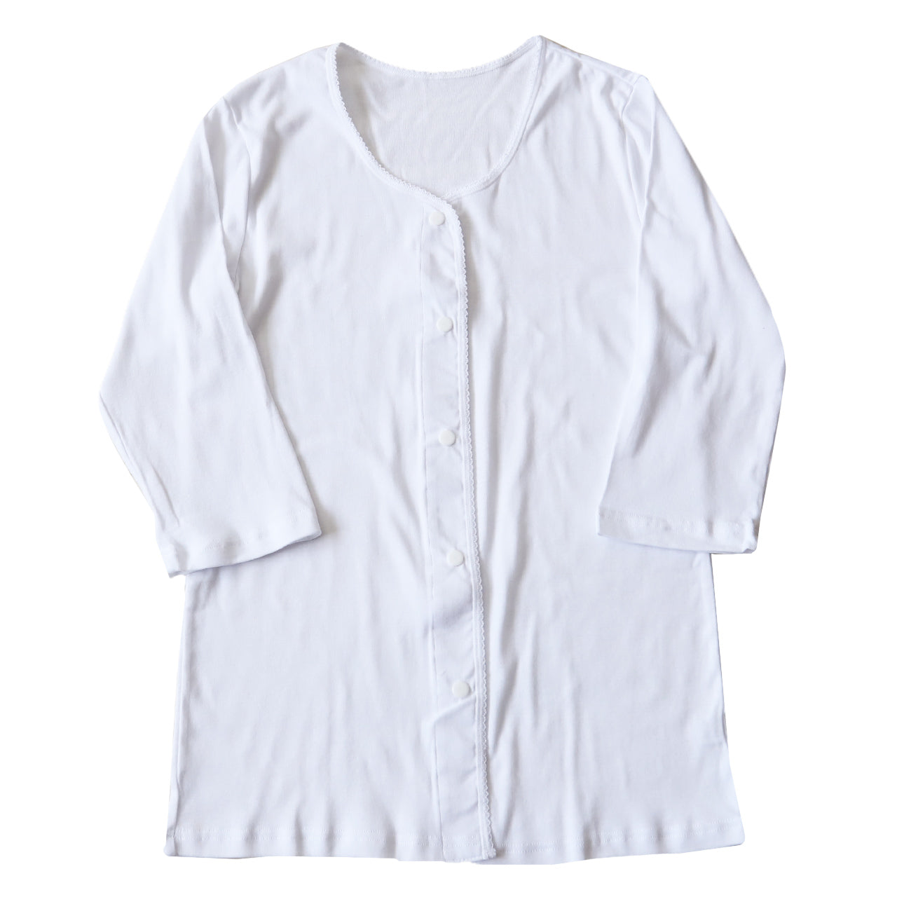 介護 前開き シャツ 7分袖 女性 綿100% プラスチックホック S~5L (レディース 下着 肌着 ワンタッチ インナー)