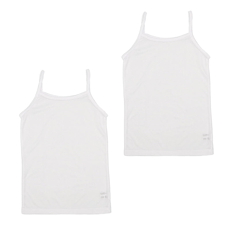 こちらはベーシックな白無地の女児用キャミソール(ノースリーブ)2枚組です。
