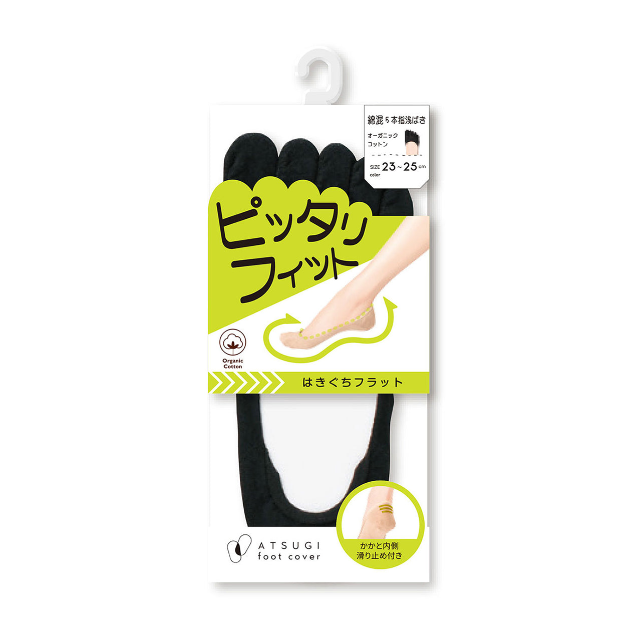 アツギ 浅ばき フットカバー 5本指 五本指靴下 23-25cm 滑り止め付き 綿混 無縫製 黒 ベージュ ATSUGI 5本指ソックス カバーソックス 無地 atsugi 浅い 浅め 靴下 レッグウェア (在庫限り)