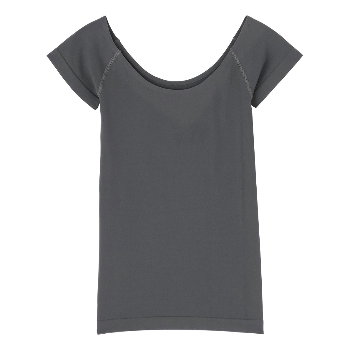 深めのUネックで、デコルテラインを美しく見せます。
