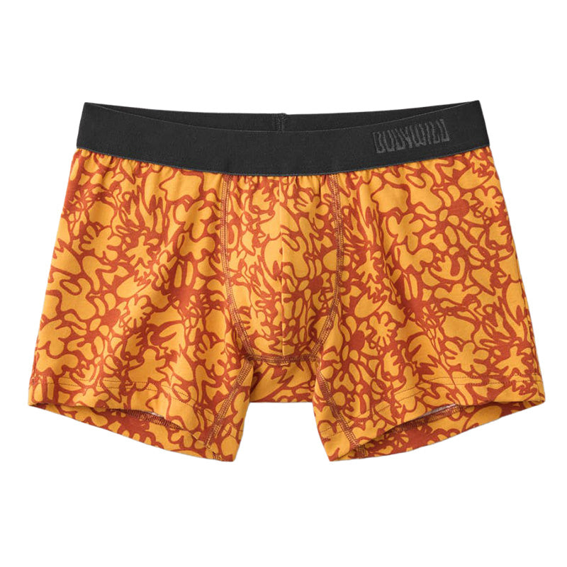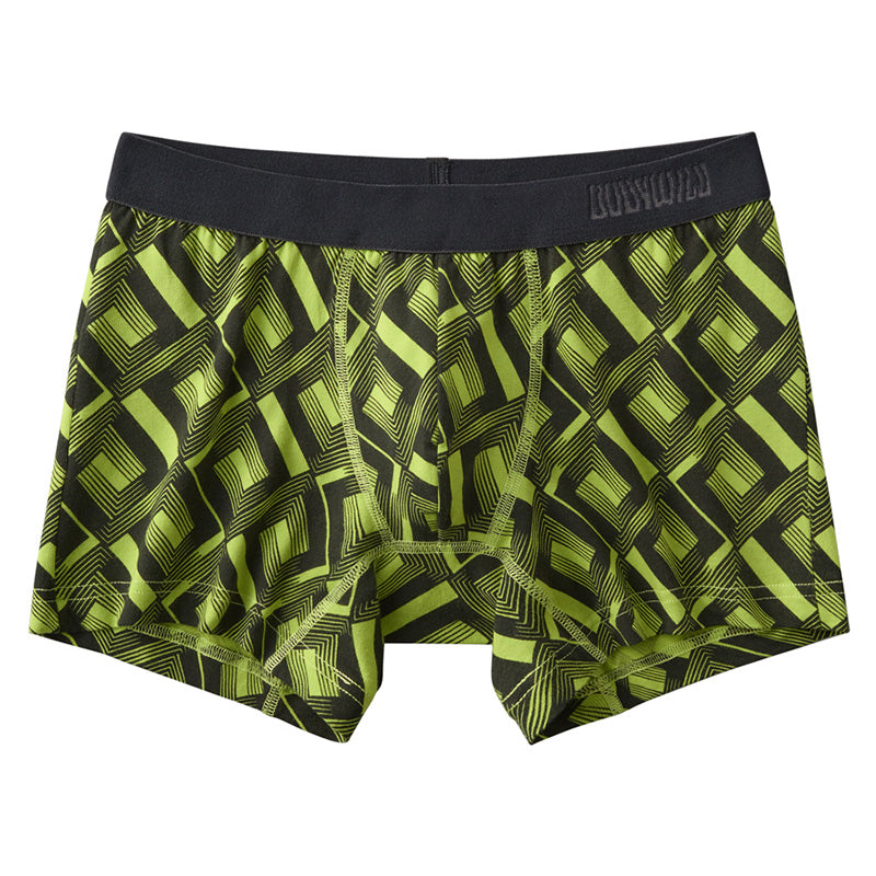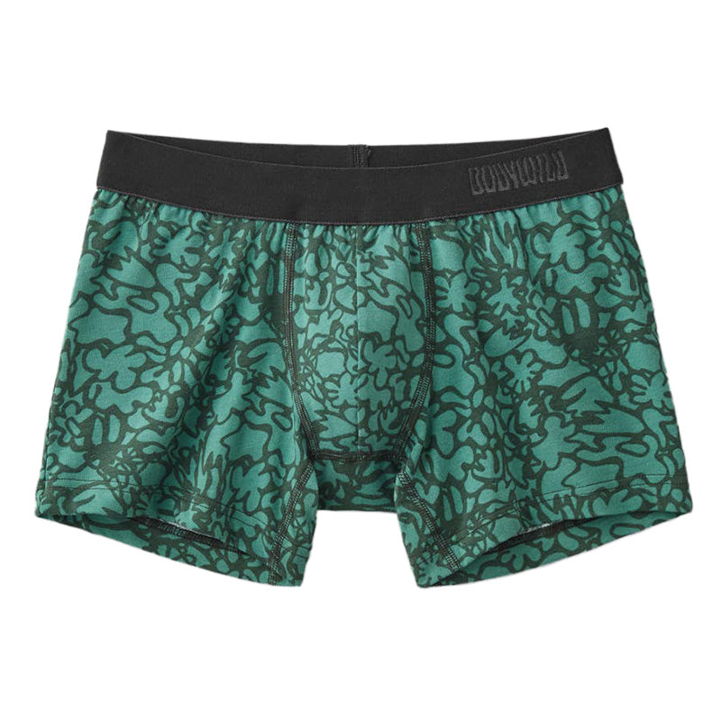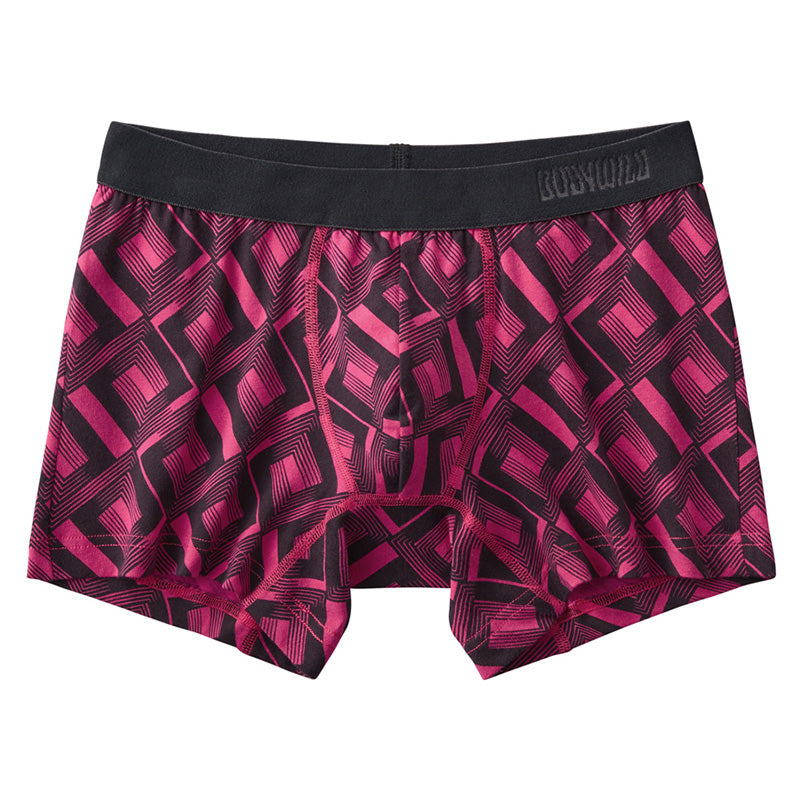前閉じ仕様で安心、ストレッチ性が高く動きやすい。グラフィックデザインが印象的な、メンズのための定番ボクサーパンツです。