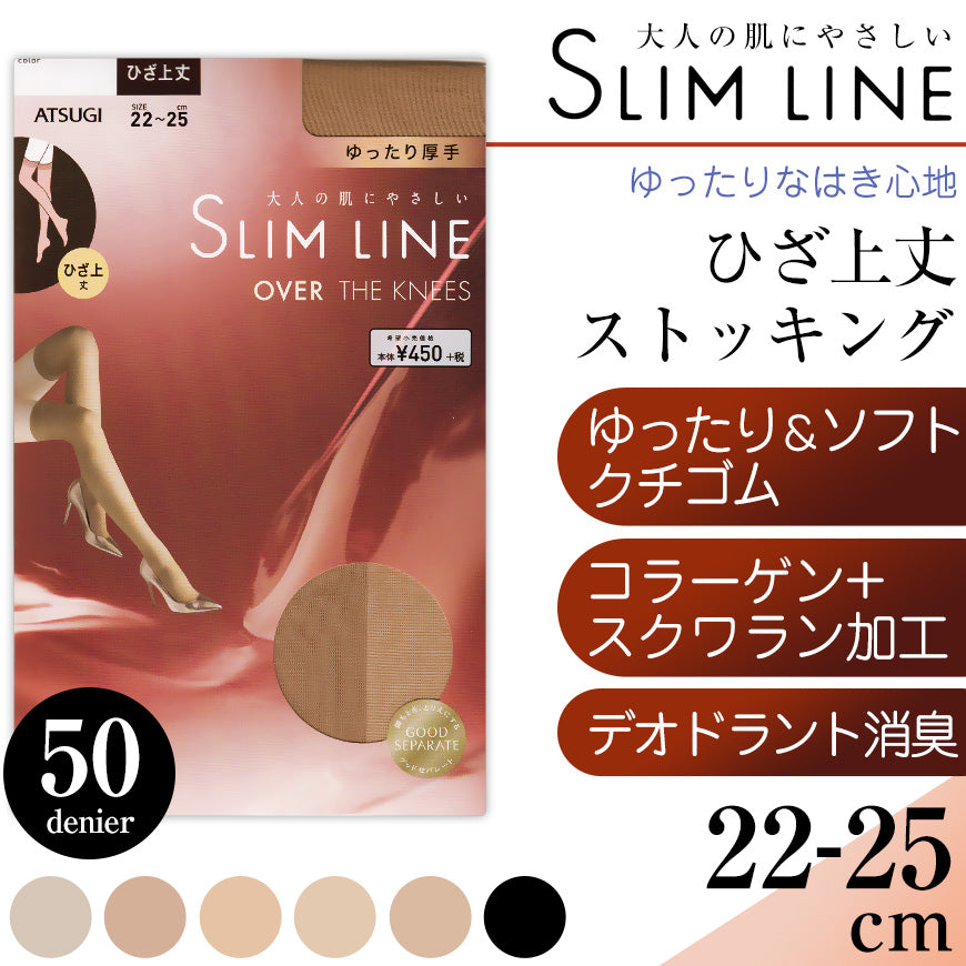 atsugi/アツギ/SLIM/LIN/ひざ上丈/膝上/オーバーニー/ストッキング/無地/シンプル/美脚/プレーンストッキング/厚手/クチゴムゆったり/50denier/しまむらファンにおすすめ l-sto-sho-ok F04550/AT/f04550