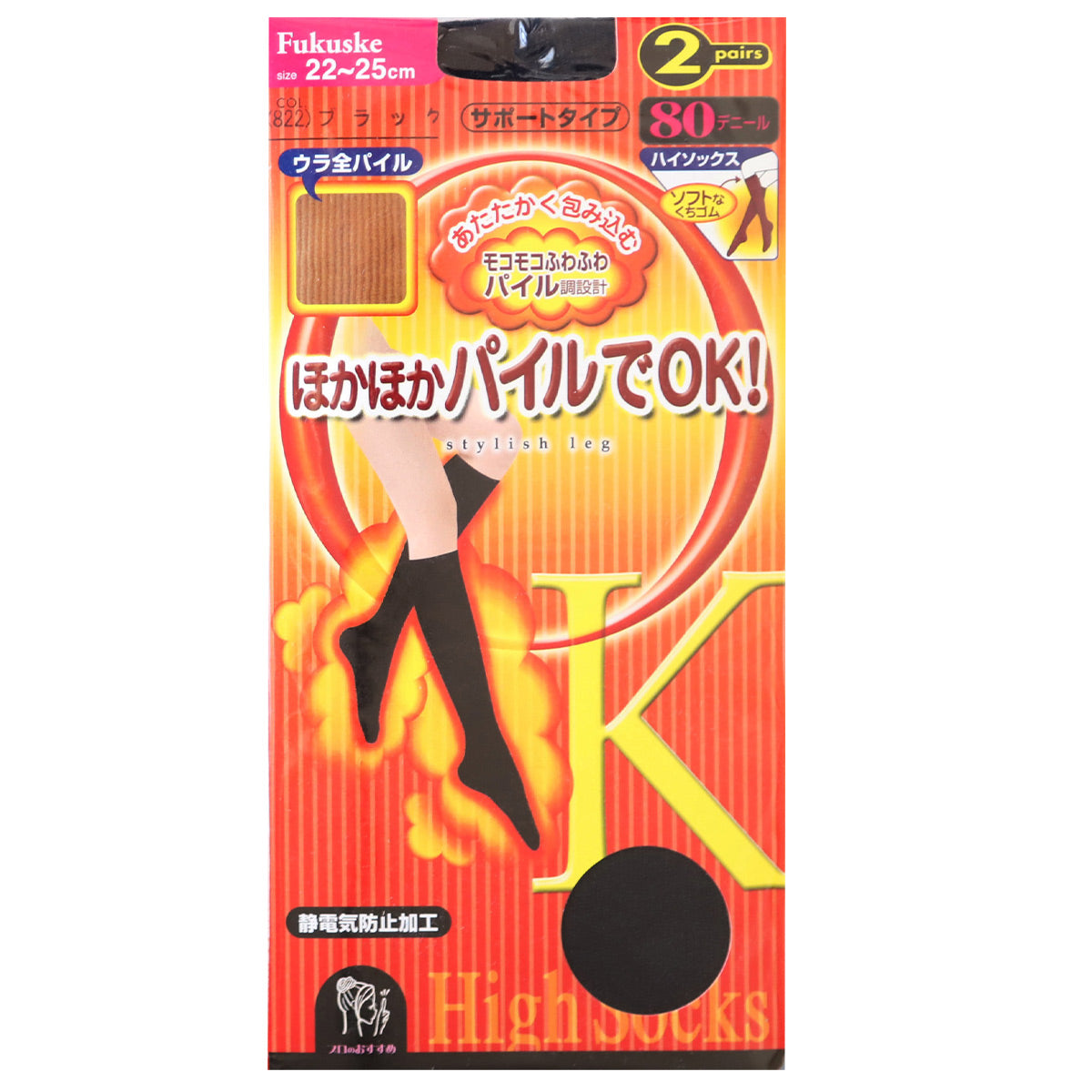 福助 ほかほかパイル 80デニール ハイソックス 2足組 22-25cm