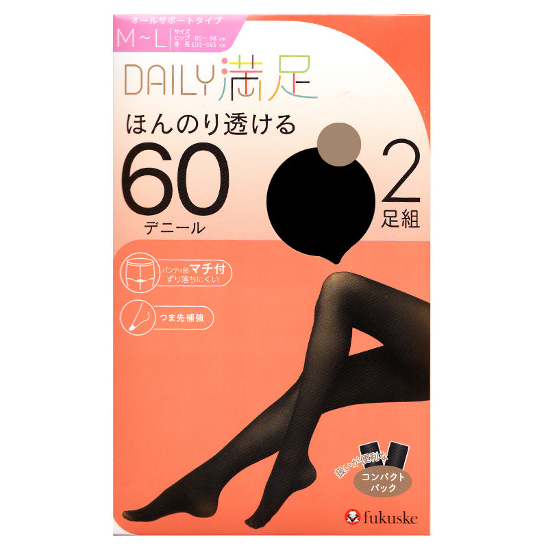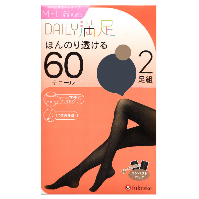 デイリー満足 タイツ 60デニール 2足組 M-L・L-LL