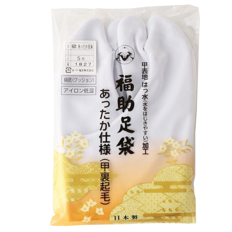 足袋 白 撥水 礼装用 福助足袋 5枚コハゼ 男性 女性 日本製 S~4L 裏起毛 はっ水 クッション 綿100 冠婚葬祭 着物 小物 和装 婦人 紳士 礼装 あったか 暖かい ネル裏 (送料無料) (在庫限り)
